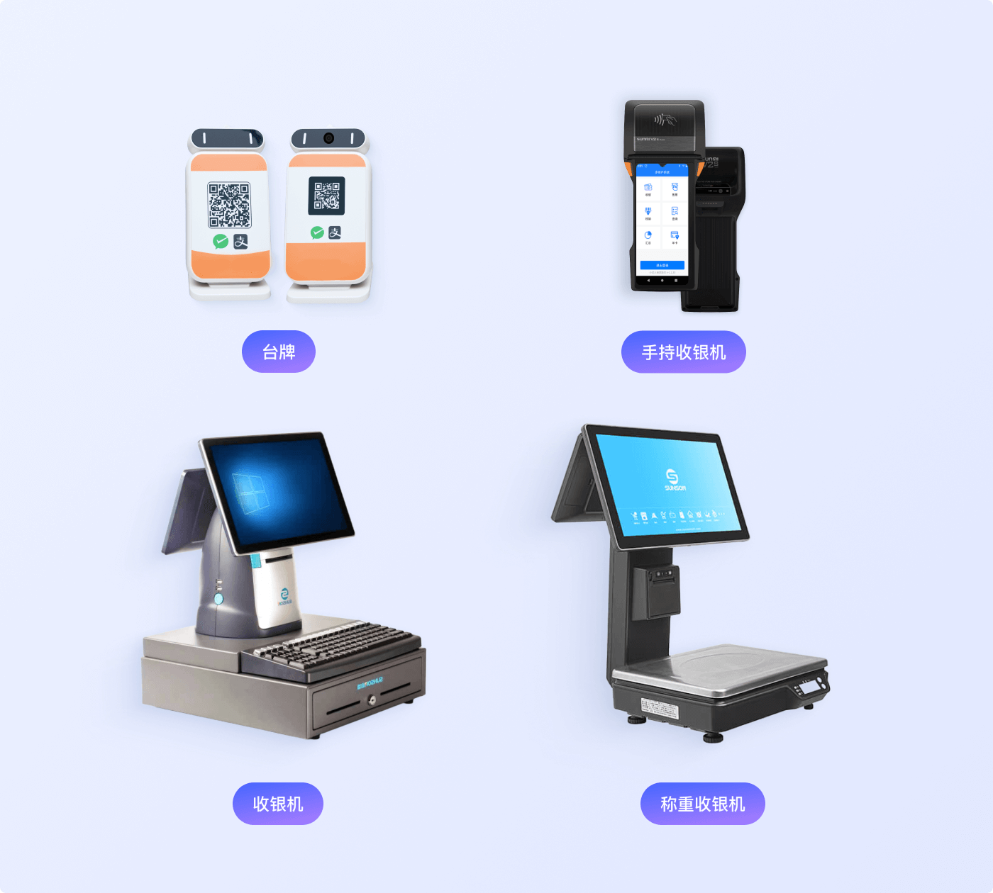 我们提供覆盖全场景的收银设备组合,助力商家实现高效、精准、灵活的收银管理,打造顺畅的消费体验。
