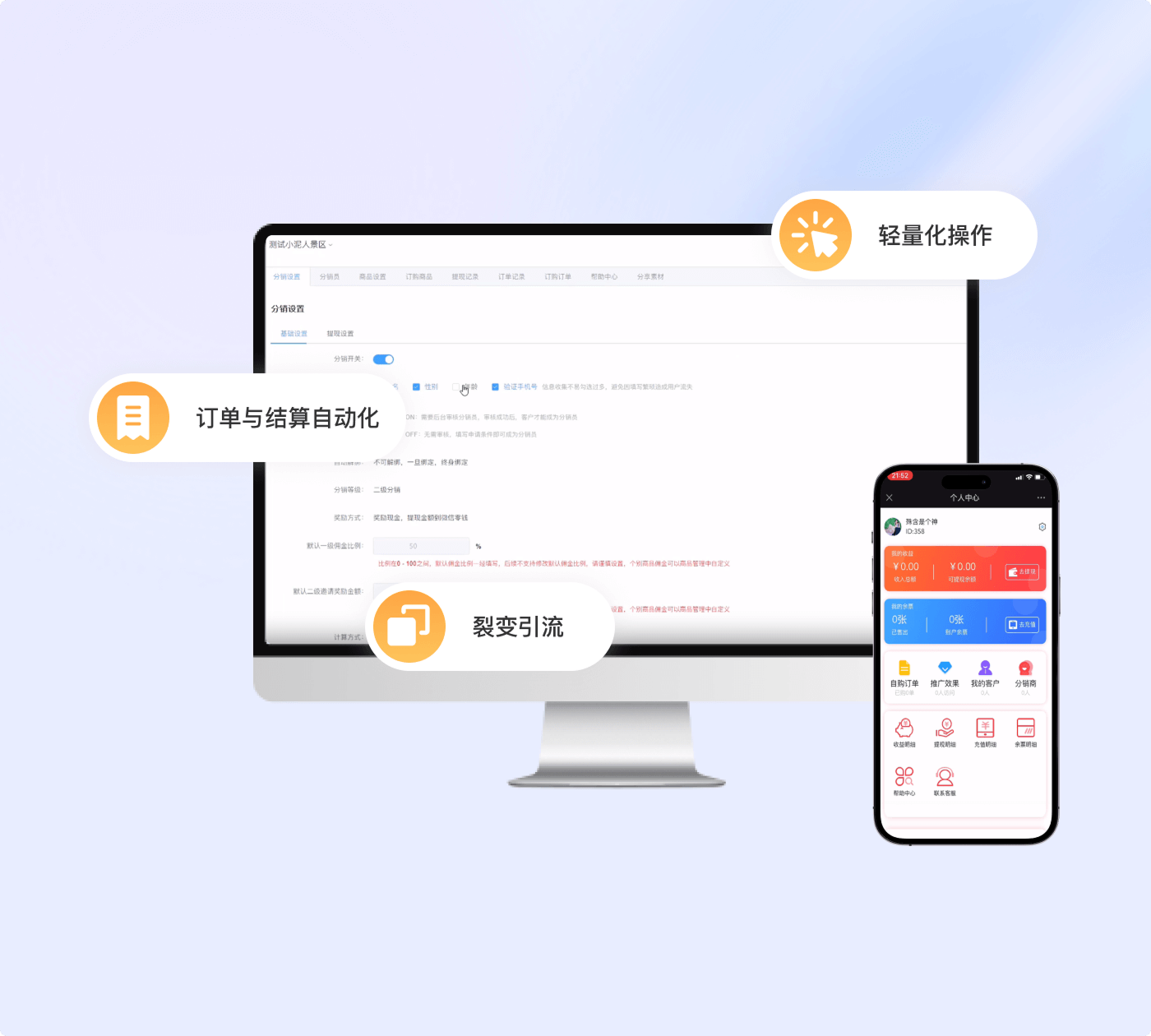 • 拓宽流量入口,实现精准引流 - 推广海报、裂变链接、推广获客