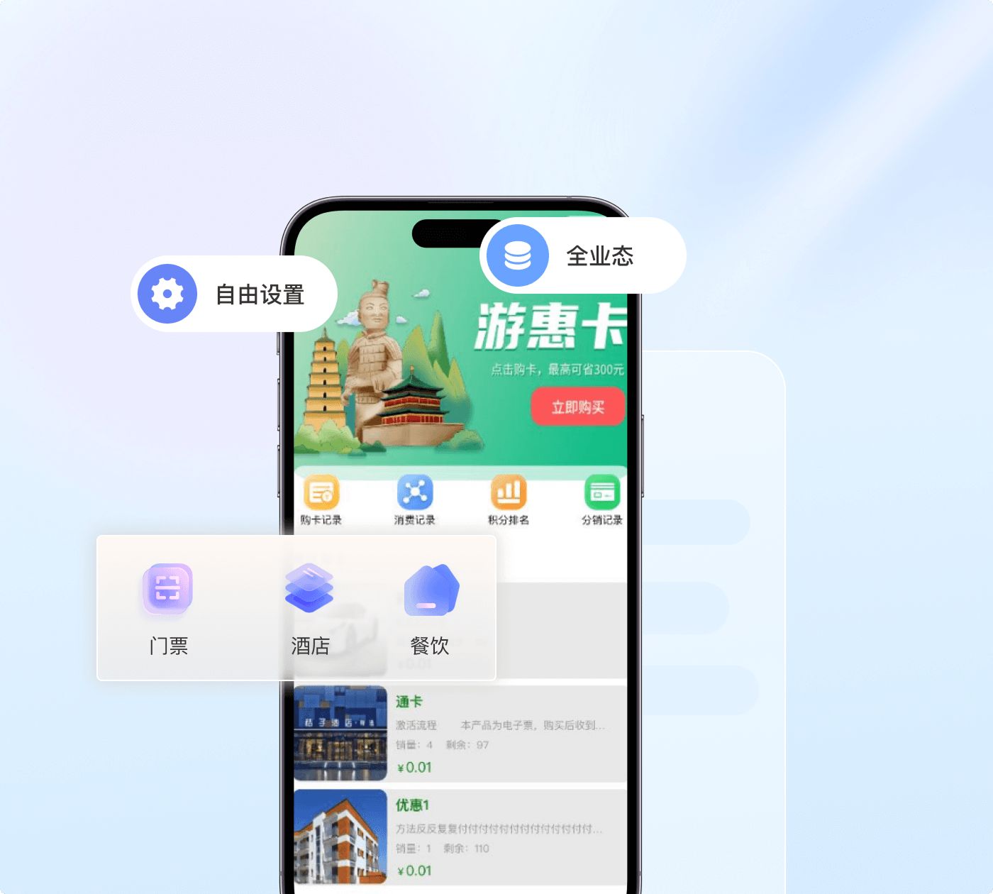支持景区、餐饮、酒店、零售等业态,实现数据互通和统一管理
